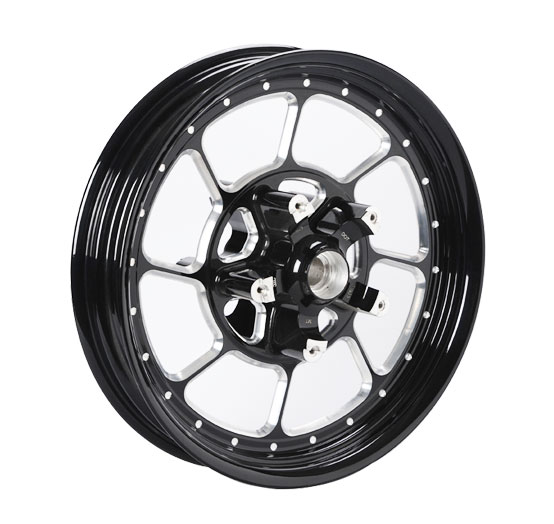 本产品采用 一种中空薄壁低压铸造技术,最薄壁厚4mm,是一种超轻量化的摩托车轮。采用特种涂装表面处理技术,达到一种特种高亮的效果。