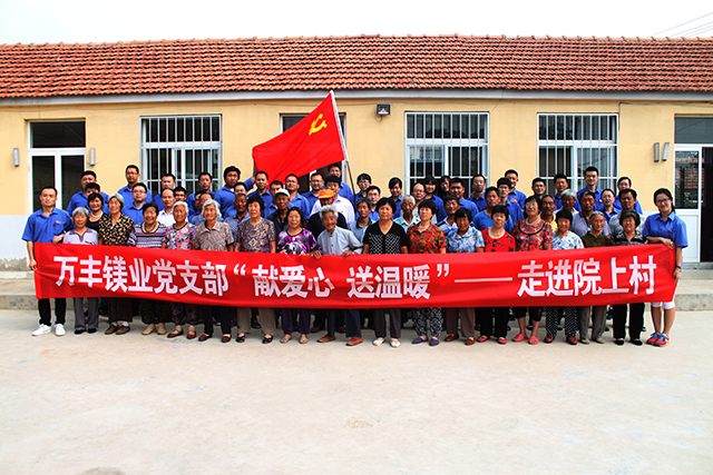 献爱心,送温暖。7月2日上午9点,镁业公司全体党员到达初村镇院上村,走访慰问村里的退伍老兵、困难党员和群众等,详细了解他们的经济收入、身体建康、家庭生活等情况,并为他们送慰问品。通过这次“献爱心,送温暖”慰问活动,使公司对老党员、老干部及结对帮扶对象的思想、生活、身体和家庭状况有了更进一步的了解,加强了感情交流和双向理解,使他们再次感受到了党的温暖。