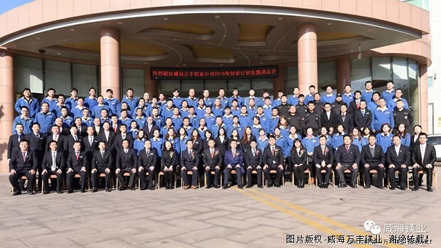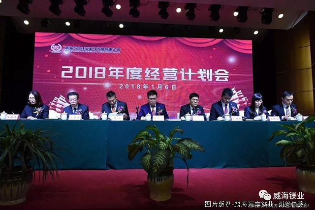 2018年1月6日上午,威海万丰镁业2018年经营计划会在金海湾国际饭店隆重召开,会议回顾总结了辉煌的2017年,并为2018年奋斗目标和工作重点指明了方向。公司领班级以上干部、全体办公室人员参加了此次会议。