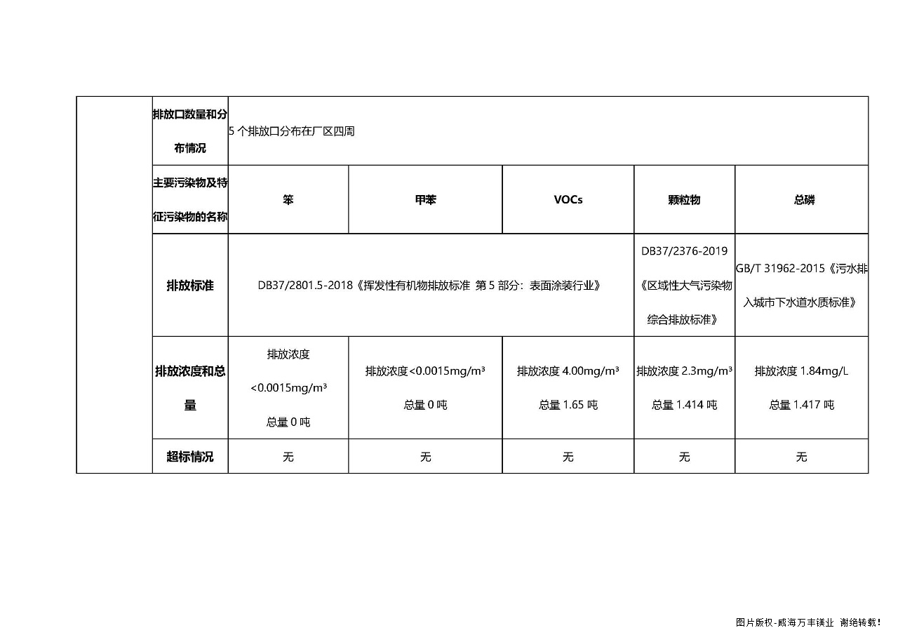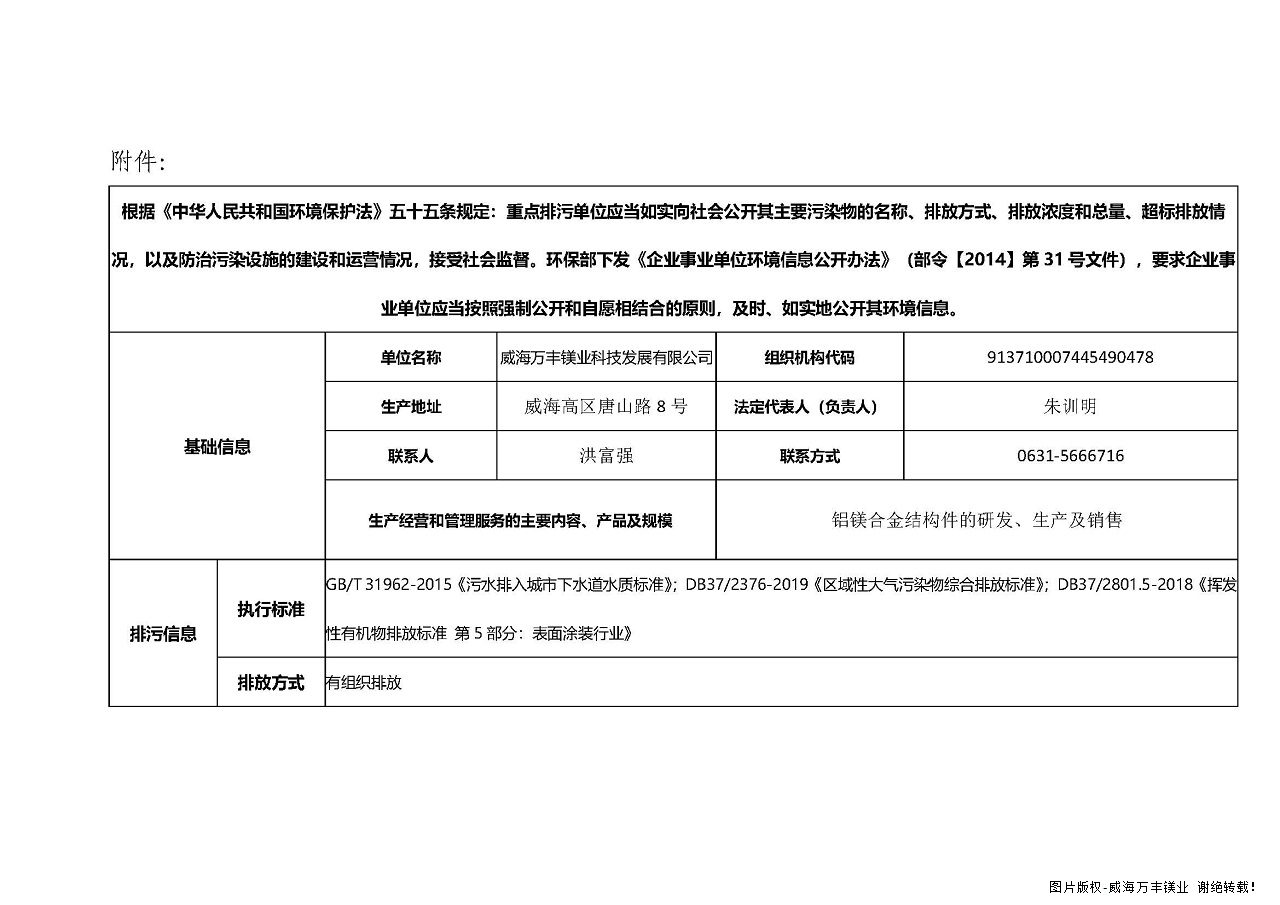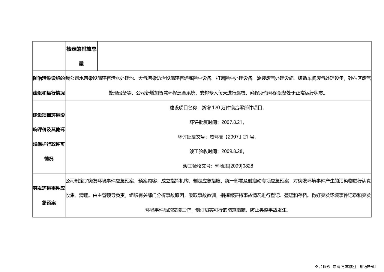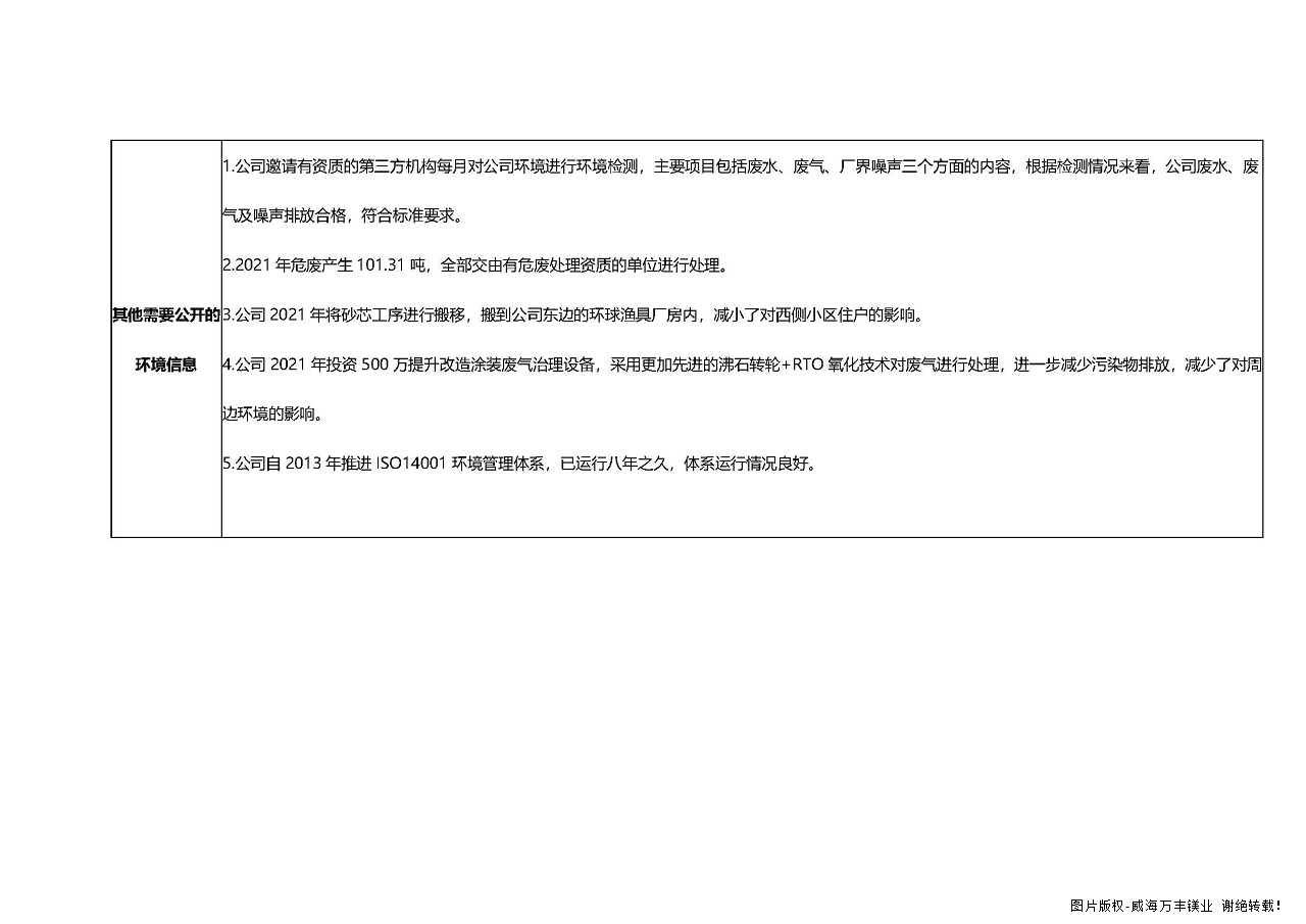 威海万丰镁业科技发展有限公司环境信息公开-2021年度